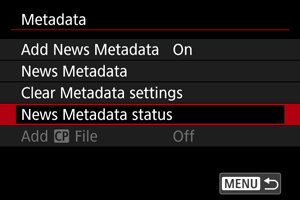 Į filmų failus galima įterpti metaduomenis, tenkinančius „NewsML-G2“ specifikacijos reikalavimus. Prieš pradedant, įterptinus metaduomenis reikia įrašyti į kortelę.