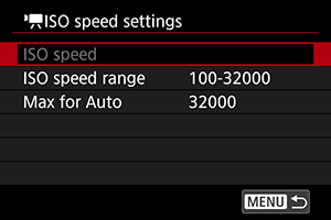 Galima nustatyti rankiniu būdu nustatomų ISO jautrumo nuostatų diapazoną (minimalią ir maksimalią reikšmę). Galima sukonfigūruoti ir ISO išplėtimą.