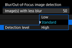- Apsvarstykite galimybę pakeisti aptikimo lygį, jei fotoaparato vykdomas vaizdų įvertinimas neatitinka įspūdžio, kurį apie vaizdus susidarote jūs.
