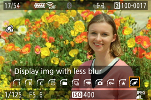 horizontaliai, kad nustatytumėte [Display img with less blur/Rodyti mažiau sulietus vaizdus].