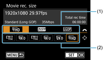 Kaip ir fotografuodami, paspauskite mygtuką , kad pasiektumėte sparčiojo valdymo ekraną. Kaskart paspaudus mygtuką
