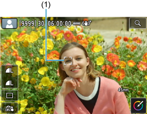 Esant tam tikroms fotografavimo sąlygoms, ant objekto gali atsirasti sekimo rėmelis (1).