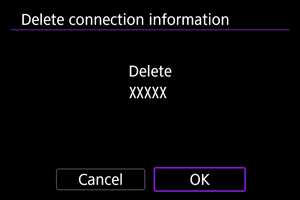 - Jei fotoaparatas jau susietas su kitu įrenginiu, parodomas pranešimas. Pasirinkite parinktį [OK/Gerai], kad išjungtumėte esamą „Bluetooth“ ryšį.