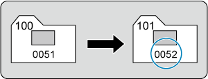 Failai numeruojami nepertraukiamai iki 9999, net jei pakeisite kortelę, sukursite aplanką arba pakeisite paskirties kortelę (kaip kad →