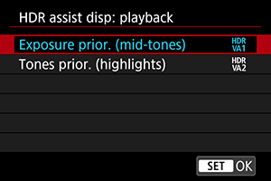 Norādiet iestatījumu [HDR assist disp: playback/HDR palīgrādījums: demonstrēšana].