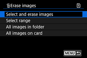 Izvēlieties [Select and erase images/Izvēlēties un dzēst attēlus].