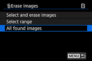 - Ja dzēšat attēlus, izvēloties [All images on card/Visi attēli kartē], tas attiecas uz karti, kas izvēlēta sadaļā [
