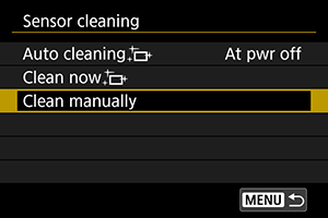 - Kad iestatīts [At pwr off/Pie izslēgšanas] vai [Enable/Iespējot], sensors tiek tīrīts, kad izslēdzas ekrāns, tai skaitā pie ekrāna automātiskas izslēgšanas.
