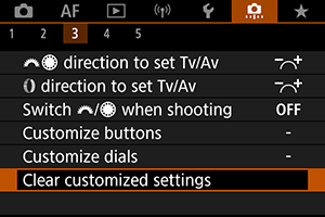 Izvēloties darbību [: Clear all Custom Func. (C.Fn)/