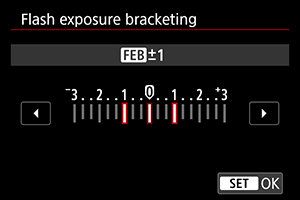 Ar zibspuldzes ekspozīcijas vairākkadru dublēšanu (FEB) aprīkotas Speedlite zibspuldzes var automātiski mainīt ārējās zibspuldzes jaudu, uzņemot trīs kadrus pēc kārtas.