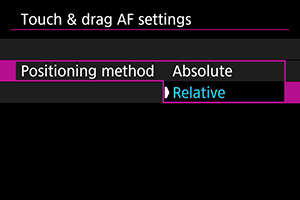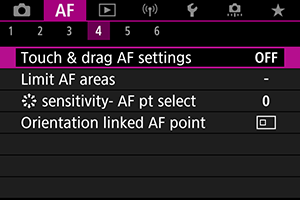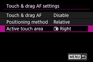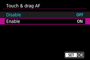 Izvēlieties [Touch & drag AF/Skāriena un pārvilkšanas AF].