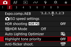 - [Enhanced/Pastiprināta]: dažos uzņemšanas apstākļos samazina pārmērīgas ekspozīcijas izraisīto detaļu zudumu gaišajās zonās vēl vairāk nekā [Enable/Iespējot].