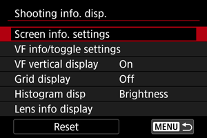 Izvēlieties [Screen info. settings/Ekrāna informācijas iestatījumi].