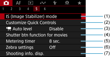 - (1) IS (Image Stabilizer) mode (IS (Attēla stabilizatora) režīms)
