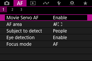 nospiešana vai AF laukuma maiņa, filmas Servo AF tiek atsākta.