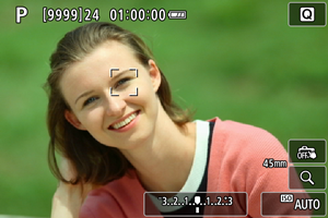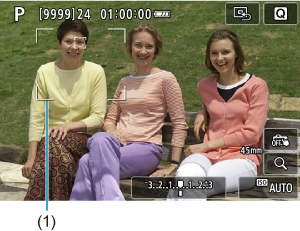 Nospiežot aizslēga pogu līdz pusei, ap fokusā esošajiem AF punktiem attēlo [].