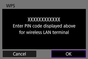 - Kad PIN kods ir norādīts, kamerā izvēlieties [OK/Apstiprināt].