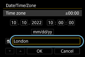 - Pēc laika joslas vai laika atšķirības ievadīšanas atlasiet [OK/Apstiprināt].