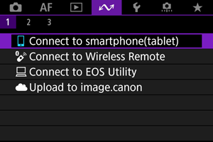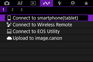 Ja nevēlaties saglabāt Wi-Fi vai Bluetooth savienojumu ar kameru, kad tā ir izslēgta, vai nu iestatiet [: Airplane mode/