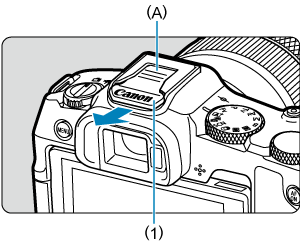 - Pievienojot piederumus, kas nav paredzēti parastajām zibspuldzes kontaktligzdām, līdz galam ievietojiet kontaktligzdā piederuma pievienošanas pēdu, pēc tam pārbīdiet pievienošanas pēdas fiksēšanas slēgu, lai fiksētu piederumu. Sīkāku informāciju sk. piederuma lietotāja rokasgrāmatā.