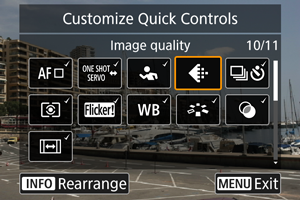 Ātrās vadīklas vienumus un izkārtojumu var pielāgot.