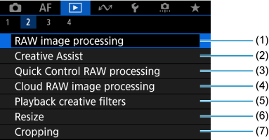 - (3) Quick Control RAW processing (RAW apstrāde no ātrās vadīklas)