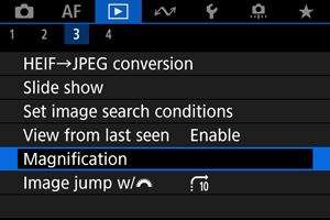 Attēlojot nākamos attēlus palielinātā skatā, tiek izmantota pozīcija, kas iestatīta vienumā [Magnified position/Palielinātā pozīcija].