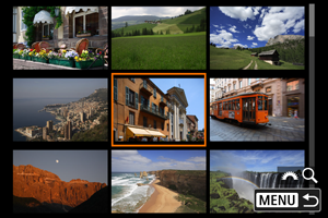 tālāk pa kreisi, tiek veikta pārslēgšana no 9 uz 36 un pēc tam 100 attēlu attēlojumu. Griežot ripu pa labi, tiek veikta rotācija starp 100, 36, 9, 4 un viena attēla attēlojumu.