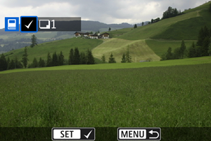 - RAW/HEIF attēlus un filmas nevar atlasīt fotoalbumiem. Ņemiet vērā, ka RAW/HEIF attēli un filmas netiek atlasīti fotoalbumiem pat tad, ja ar opciju [Multiple/Vairāki] tiek atlasīti visi attēli.