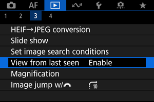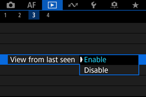 - [Enable/Iespējot]: demonstrēšana atsākas no pēdējā attēlotā attēla (ja vien tikko neesat beidzis uzņemšanu).