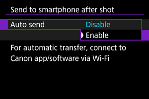 Izvēlieties [Send to smartphone after shot/Pēc uzņemšanas sūtīt uz viedtālruni].