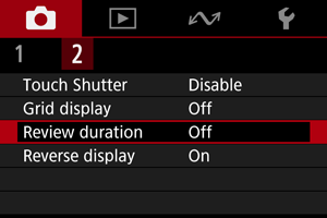 To keep the image displayed immediately after you shoot, set to [Hold], and if you prefer not to have the image displayed, set to [Off].