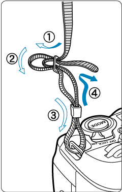 No apakšpuses izvelciet siksnas galu caur siksnas stiprinājumu, pēc tam izveriet to cauri siksnas sprādzei, kā parādīts attēlā. Pievelciet siksnu, lai savilktu vaļīgās vietas, un pārbaudiet, vai siksna neizslīd no sprādzes.