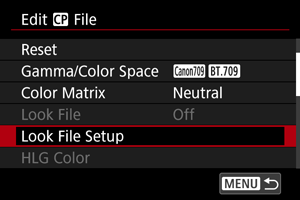 Izvēlieties [Look File Setup/Skatīšanās faila iestatīšana].