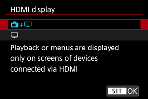 - HDMI izvade bez informācijas novērš brīdinājumu rādīšanu par kartes ietilpību, akumulatora uzlādes līmeni vai augstu iekšējo temperatūru ar HDMI starpniecību ().