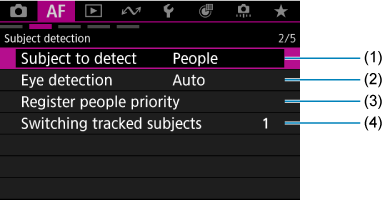 Cilnes izvēlnes: AF (filmas ierakstīšana)