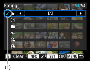 Attēlotos attēlus var filtrēt atbilstoši jūsu meklēšanas nosacījumiem. Pēc attēlu meklēšanas nosacījumu iestatīšanas var demonstrēt un attēlot tikai atrastos attēlus. Atrastos attēlus var arī aizsargāt, vērtēt, demonstrēt slaidrādē, dzēst un veikt ar tiem citas darbības.