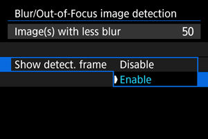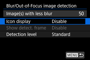 Iestatiet izplūdušu/nefokusētu attēlu noteikšanas vienumus.