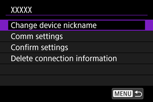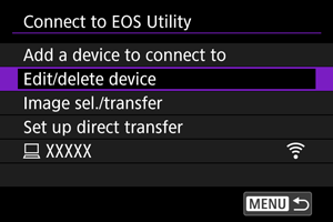 Pirms citu ierīču savienojumu iestatījumu rediģēšanas vai dzēšanas pārtrauciet savienojumu. Šajā sadaļā apskatīti vienumi, kas nav aprakstīti sadaļā Darbības ar kameru, izmantojot EOS Utility.