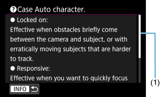 Kad tiek attēlots [ Help/ Palīdzība], var attēlot funkcijas aprakstu, nospiežot pogu . Lai aizvērtu palīdzības informāciju, nospiediet pogu vēlreiz. Grieziet ripu