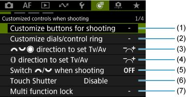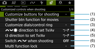 - (1) Customize buttons for shooting (Pogu pielāgošana fotografēšanai)