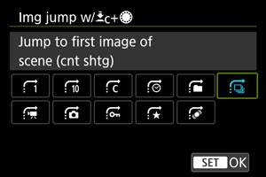 Lai iestatītu, kā kamera šķirsta attēlus, viena attēla displejā demonstrēšanas ekrānā varat pagriezt disku , turot nospiestu [