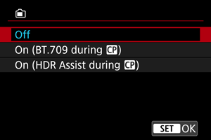 Ja kamerā ir iestatīts [HDR PQ], tiek rādīti konvertēti attēli, kas atgādina, kā attēli izskatīsies HDR demonstrēšanas ierīcē.