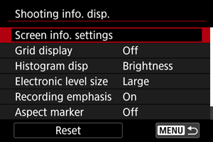 Izvēlieties [Screen info. settings/Ekrāna informācijas iestatījumi].