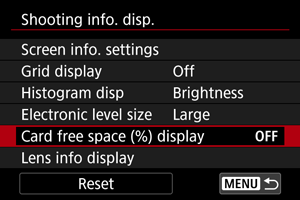 Izvēlieties [Card free space (%) display/Brīvās vietas kartē attēlojums (%)].