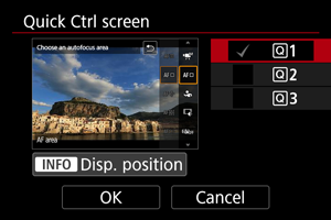 ]), varat pielāgot Pielāgoto ātrās vadīklas izvēlni, izmantojot [