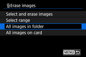 : Dzēst attēlus], tiek dzēsti visi mapē vai kartē esošie attēli.