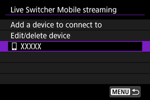 - Lietotnē Live Switcher Mobile izvēlieties kameru savienojumam.