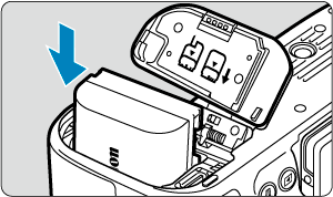 Ievietojiet kamerā pilnīgi uzlādētu akumulatora bloku LP-E6P.