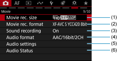 - (1) Shooting info. disp. (Uzņemšanas informācijas attēlojums)